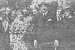 In 1917[24] Sangenís married Carmen Corrià Salvadó[25] (in some sources Salvador),[26] a girl from the nearby Artesa de Lleida[27] (died 1981).[28] She was daughter to Josep Corrià Melgoso,[29] also a local landowner and an entrepreneur in the olive oil business.[30] The couple lived in Lérida, managing their landed property scattered also in the province of Barcelona.[31] They had two children, Juan Casimiro and Dolores Sangenís Corrià.[32] Juan, initially a Carlist but later a Falangist,[33] became a high regime official during late Francoism; he served in the Cortes, as alcalde of Lérida and as president of Diputación Provincial. Dolores also made it to high society, as she married José Ma de Porcioles i Colomer, the longtime mayor of Barcelona from the late 1950s till the early 1970s.[34] Their son and the grandson of Casimiro, José María de Porcioles Sangenís, following a career in business and publishing when a retiree is currently recognized and active as an amateur historian of Barcelona.[35]