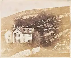 Between 1829 and 1840 much of the land around Caswell Bay was bought by John James, a former Curate of Bishopston, for his daughter and his son-in-law, Charles Morgan.[7] In 1846, The Morgans sold a piece of land on the eastern side of the bay to 19th Century pioneer photographer John Dillwyn Llewelyn who was a regular visitor to the bay. Llewelyn built a holiday home, Caswell Cottage, which stood until around 1960 on the site of what is now the Caswell Bay public car park.[8] In 1854 images of two of his photographs of Caswell Bay were requested by Prince Albert.[9] In August 1878 Llewelyn's thirteen-year-old grandson drowned whilst swimming in the bay, with the inquest held at the Caswell Bay Hotel.