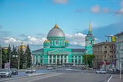 Cathedral of Our Lady of the "Omen" (Russian: Зна́менский собо́р) is an Orthodox church is in Kursk. It is the main cathedral of the Kursk Metropolitanate and Eparchy of the Russian Orthodox Church. It is located in the historical center of the city, on the territory of the Cathedral of Our Lady of the "Omen". It was built between 1816 and 1826 to celebrate the victory in the French invasion of Russia of 1812. The temple was built in the style of classicism, which is a type of architecture that imitates the features of the Western European Renaissance.[1] It has a traditional cross-dome construction, which means it has a cruciform design with a significantly elongated western part. For a long time, the cathedral stored the miracle-working Theotokos of Kursk icon. Every year, there was a procession with the icon.[2] It was transferred to the Kursk Root Monastery Hermitage of the Nativity of the Virgin Mary.[3] The cathedral has been rebuilt several times over its long history. In 1943, it was badly damaged in a fire. From 1937 to 1992, the cathedral was used as a movie theater called the October cinema. Now, it is a monument of federal importance.[4][5]