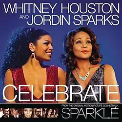 "Celebrate" is a duet by American singers Whitney Houston and Jordin Sparks. It was written and produced by R. Kelly for the soundtrack album Sparkle to the 2012 musical drama film of the same name. The film starred Houston and Sparks. RCA Records released "Celebrate" as the first official single from the soundtrack. It is the last song recorded by Houston before she died on February 11, 2012. It was officially released on June 5, 2012 for digital download on iTunes and Amazon. The song made its US radio premiere on On Air with Ryan Seacrest on May 21, 2012. For the week June 16, 2012, "Celebrate" debuted at number 34 on the US Adult R&B Airplay and peaked at number ten on the chart. During that same week, "Celebrate" also debuted at number 84 on the US Hot R&B/Hip-Hop Songs chart, and has since peaked at number 39, becoming Houston's 40th top forty hit on the chart. The accompanying music video for the song was filmed on May 30, 2012. The video was shot over two days by director Marcus Raboy.[3] The music video made its world premiere on BET's 106 & Park on June 27, 2012.