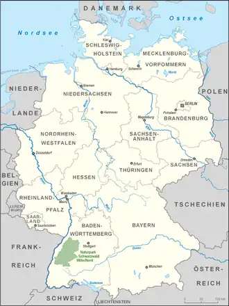 The Central/North Black Forest Nature Park (German: Naturpark Schwarzwald Mitte/Nord) is located in Baden-Württemberg in Germany. It covers an area of 3,750 km2 and was founded in December 2000.[1] As of 2018, it is the third-largest nature park in Germany.[2]