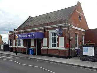Chadwell Heath railway station is a stop on the Great Eastern Main Line in Chadwell Heath, which straddles the London Boroughs of Redbridge and Barking & Dagenham in East London, England. It is 9 miles 79 chains (16.1 km) down the line from London Liverpool Street and is situated between Goodmayes and Romford. Its three-letter station code is CTH and it is in Travelcard Zone 5.[3]