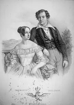 In 1844, he married Princess Elisabeth Reuss of Greiz (1824–1861), the daughter of Heinrich XIX, Prince Reuss of Greiz and Princess Gasparine of Rohan-Rochefort. Her elder sister, Princess Louise Caroline Reuss of Greiz, married Prince Eduard of Saxe-Altenburg, and, after his death in 1852, Prince Heinrich IV Reuss of Köstritz. Before her death on 7 May 1861, they were the parents of: