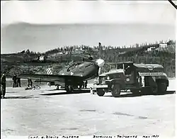 In 1950 Pan American World Airways purchased a P-51 Mustang to allow Blair a chance to attempt a new long-distance record. A P-51C equipped with long-range internal fuel tanks, the aircraft had been flown by Paul Mantz, winning the transcontinental Bendix Trophy air races in 1946 and 1947, and finishing second in 1948 and third in 1949.[4] Rechristening the plane "Stormy Petrel" and then "Excalibur III", Blair began setting records. On January 31, 1951, Blair flew nonstop from New York to London to test the jet stream, traveling 3,478 miles (5,597 km) at an average speed of 446 miles per hour (718 km/h) in seven hours and 48 minutes, setting a record for a piston engine plane. On May 29 of the same year he flew from Bardufoss, Norway, to Fairbanks, Alaska, flying 3260 nonstop miles across the North Pole.[5] Captain Blair was awarded the Harmon Trophy from President Truman.[6] That same year he was also awarded the Gold Medal of the Norwegian Aero Club. The Excalibur III is now on display at the Steven F. Udvar-Hazy Center.[7]