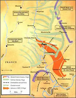 In the First World War, the German First Army under von Kluck had occupied Charly, when in the First Battle of the Marne, the British Expeditionary Force (BEF) counter-attack crossed the Marne at Charly.
