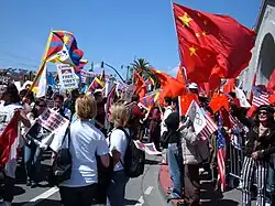 Americans who had been optimistic about the emergence of democratic characteristics in response to the rapid economic growth and China were stunned and disappointed by the brutal crackdown of the pro-democratic Tiananmen Square protests in 1989.[91] The US and other governments enacted a number of measures against China's violation of human rights. The US suspended high-level official exchanges with the PRC and weapons exports from the US to the PRC. The US also imposed a number of economic sanctions.[92] In the summer of 1990, at the G7 Houston summit, the West called for renewed political and economic reforms in mainland China, particularly in the field of human rights.[93]