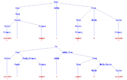 Expr → Term | Expr AddOp Term | AddOp Term Term → Factor | Term MulOp Factor Factor → Primary | Factor ^ Primary Primary → number | variable | ( Expr ) AddOp → + | − MulOp → * | /
