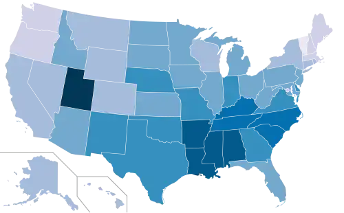 89. ^ "United States - Statistics and Church Facts - Total Church Membership".