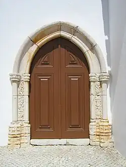 The first substantial church was probably erected in Estômbar in the first half of the 16th century (while Lagoa was still part of the municipality/concelho of Silves).[1] The style of the main door of the church and its affinity to similar buildings such as the principal churches of Alvor and of Odiáxere, and Santa Misericórdia Church of Silves suggests the existence of a regional sub-group of Manueline architecture in the Algarve.[2] The popular prevailing style of the time is reflected in this church: a tripartite nave with a wooden ceiling, no transept, and altars at the head of the nave on each side of the chancel, as well as side chapels.[2][3]