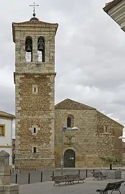 The church, with a design plan consisting of three naves and a horn, presents two distinct construction phases. It preserves both the apse and the brick anteapse from its original construction in the 13th century. The rest of the church's construction was rushed in the middle of the 16th century. The interior roofing, constructed to accommodate the new naves, was made with wood and attached to the apse. The bell tower was constructed by Juan de Ballesteros.