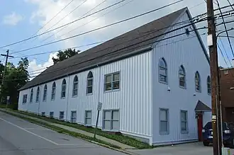 It is a Gothic Revival-style church designed by architect Frank Fitch in 1878, with board and batten exterior that follows the architectural ideology of A.J. Downing.[2]