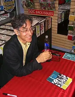 Mazzucchelli autographing a copy of the book at a June 28, 2012, signing at Midtown Comics in Manhattan.