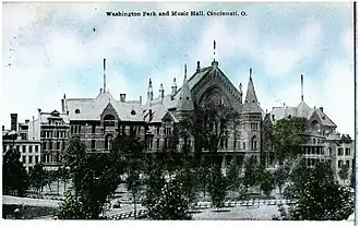 - ^ "Fire Damages Music Hall at Cincinnati; The Odeon was Completely Destroyed in an Hour". The Indianapolis News. September 4, 1902. p. 1. Retrieved December 31, 2024 – via Newspapers.com.
