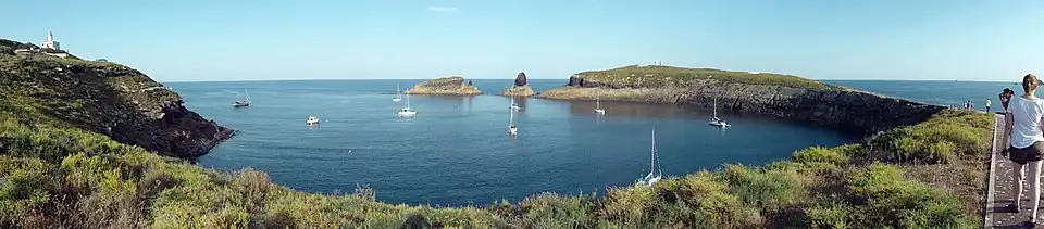 The Columbretes Islands (Valencian: Les Columbretes, IPA: [les kolumˈbɾetes] or Els Columbrets[a], IPA: [els kolumˈbɾets]) are a group of small uninhabited islets of volcanic origin, in the Mediterranean Sea, 49 kilometres (30 miles) off Oropesa del Mar. Administratively they belong to Castellón de la Plana in the Valencian Community.