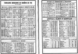 | Couvonge – L'Isle-en-Rigault | 9 km | 1000 mm | 1879 | 1929 | Later, there were 1,435 mm (4 ft 8+1⁄2 in) standard gauge gauge tracks on the Robert-Espagne-Haironville section of the line. |