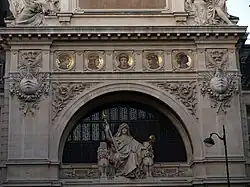Allegory of prudence by Aimé Millet, and mosaic medallions of the five continents