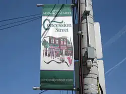 Concession Street is the oldest settlement area on the Hamilton mountain. It was once an African American neighbourhood settled by slaves escaping the U.S. via the Underground Railroad. This part of Hamilton Mountain was then known as "Little Africa". Canada in general and Hamilton in particular received these refugees with great sympathy and understanding. They were illiterate and took up education in the "Mission", a union church and school building, erected in 1860. The Union Mission was situated on the south-side of Concession between Twenty-Second and Twenty Third Streets.[2] The adults would sit in with the children and spell out words and hoped that they might some day be able to read the Bible. They also liked to display pictures of Queen Victoria alongside that of Abraham Lincoln. They also took on new surnames to avoid being identified and recaptured. Many of the families there favoured the name "Johnson" as well as "Atkins", "Murdoch" and "Green". Over the years these families abandoned the homes they had established, to be seen no more on the hilltop. They didn't like the long cold winters and eventually returned to the United States.[3] Today it is a predominantly white neighbourhood.