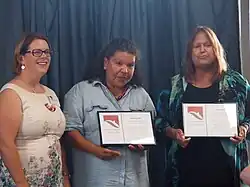 Past recipients have included Jillian Marsh (1998) David Noonan, Joel Catchlove & Sophie Green,[5] Richard Owen, the Kupa Piti Kunga Tjuta Aboriginal Corporation,[6] Kevin Buzzacott,[5] Anne Daw (2013)[7] and Mark Parnell (2004).[8]