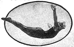 Meyer followed-up her AAU title victory with a second-place finish during a diving meet at the 1917 Rose Festival in Portland.[33] Meyer took first place at the 10 foot springboard event during the 1917 Pacific Coast Indoor Diving Championships on July 27 at Idora Park in Oakland, California.[34][35] During the event, she introduced a new diving form called the "volplane".[34] Following her Pacific Coast title victory, Meyer issued a challenge to national divers.[36] On September 3, 1917, Meyer won a diving contest at the Astoria Regatta.[37] That year, she began training for competitive high diving events from 16 and 24 foot platforms.[38]