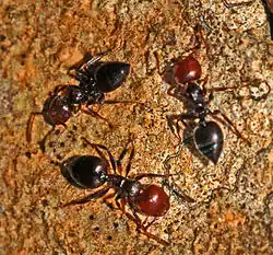 They also transport live aphids into oak-gall nests. Currently there is no evidence of immediate predation of these aphids inside the galls, so they are likely stored to overwinter due to a mutualistic relationship and/or serve as food storage.[1]