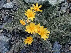 Western hawksbeard is occasionally grown by wildflower gardeners for its large deep yellow blooms. The taproot cannot be divided for successful propagation and therefore it is planted from seed when cultivated. The author Claude A. Barr was of the opinion that this species is the most attractive in the genus Crepis and that all the others are, "for the birds."[4]
