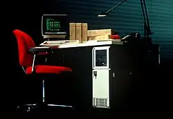 The first computer released by Cromemco was the Z-1 in August 1976.[17] The Z-1 came with 8K of static RAM and used the same chassis as the IMSAI 8080 but featured the Z80 microprocessor rather than the IMSAI computer's Intel 8080 chip.[18] The Z-1 was succeeded by the Z-2 in June 1977, which featured 64K of RAM[19] and the ability to run Cromemco DOS (CDOS), a CP/M-like operating system.[20] The Z-2 also added a parallel interface in addition to an RS-232C serial port and no longer included the large panel of switches that had been part of the Z-1 model.