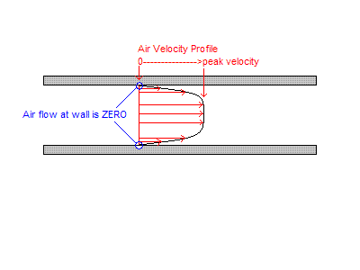 The reason that polished ports are not advantageous from a flow standpoint is that at the interface between the metal wall and the air, the air speed is zero (see boundary layer and laminar flow). This is due to the wetting action of the air and indeed all fluids. The first layer of molecules adheres to the wall and does not move significantly. The rest of the flow field must shear past, which develops a velocity profile (or gradient) across the duct. For surface roughness to impact flow appreciably, the high spots must be high enough to protrude into the faster-moving air toward the center. Only a very rough surface does this.