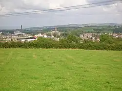 Dalry (from Scottish Gaelic: Dail Ruighe, 'the haugh at the slope'[2]) is a small settlement on the Rye Burn.[3] Its history has signs of early inhabitants in the area; the remains of an ancient fort, made of three concentric round walls, can be found on the summit of Carwinning Hill to the North of Dalry, west of the B784 to Largs.