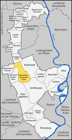 Location of Dannstadt-Schauernheim within Rhein-Pfalz-Kreis district ![]() | |