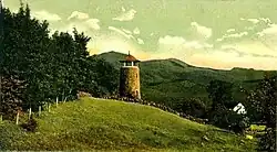 In 1885, a landslide on the north side of Cherry Mountain demolished the Stanley farm, mortally wounding a worker. Local hotels immediately arranged daily excursions to view the scene, now marked by a New Hampshire historical marker (number 152) titled "Cherry Mountain Slide".[4] Jefferson's third marker (number 229) honors Deborah Vicker, known as "Granny Stalbird",[4] who is said to have brought the first bible to the north country.