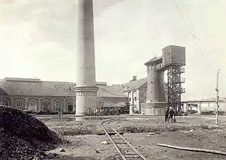 The 8.3 kilometres (5.2 mi) long Decauville railway with rails weighing 9,5 kg/m (19 lbs/yard) ran over two metal bridges, of which one was designed Gustave Eiffel and erected by Fives-Lille.[2][1] The track on the site of the sugar mill was 172 metres (564 ft) long. It ended at a turntable at the western end of the site.[3]