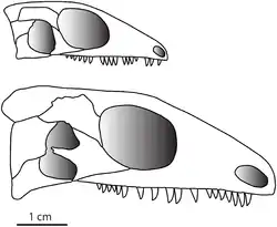 Delorhynchus is an extinct genus of lanthanosuchoid parareptile known from the late Early Permian (Artinskian age) Garber Formation of Comanche County, Oklahoma. It contains three species: the type species D. priscus is based on a series of maxillae.[3] The second species to be described, D. cifellii, is known from a larger number of well-preserved skulls and skeletal material.[4] The third species, D. multidentatus, is based on a fragmentary skull with several rows of teeth on its jaw.[5]