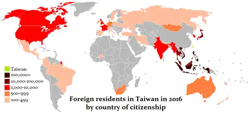 - ^ "Foreign Residents Statistics". Taiwan National Statistics. National Statistics, Republic of China (Taiwan). Retrieved 15 February 2025.