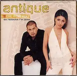 Die for You, also known as Die for You/Tha Pethaina Gia Sena in the Greek market, is the name of the second studio album by Greek musical group Antique. The album was released on 19 June 2001 by V2 Records.[1] A number of the songs are featured on all three of Antique's follow-up albums. "Follow Me (O,ti Theleis)" was used as the first single from Me Logia Ellinika while a Greek version of "Why" was a single from Alli Mia Fora. Other songs from the album were included on the duo's final studio/compilation album Blue Love. "I Agapi Ine Zali", originally "I Agapi Ine Zali (Na Mou To Peis)", is a cover of Haris Alexiou.