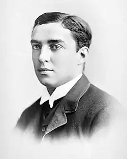 Boucicault made his stage début in his father's play, Louis XI at Booth's Theatre in New York City on 11 October 1879. His London début was in November 1880, when he played Andy in another of his father's plays, Andy Blake. From then he was constantly on the stage either acting or directing productions. In 1881 and 1882 he appeared at the Court Theatre, and in 1883 he went on tour as the original Harry Marsland in The Private Secretary. He also adapted two plays, My Little Girl (1882) and Devotion (1884), both of which were produced at the Court.[1] In 1885 he went to Australia with his father, and decided to remain there. He entered into partnership with Robert Brough in 1886, and at the Bijou Theatre in Melbourne and the Criterion in Sydney a long series of plays by Robertson, Pinero, Jones and other dramatists of the period was produced with great care and artistry.[2] A fine company was assembled which included Boucicault's sister Nina, afterwards to make a reputation in London, G. S. Titheradge, and G. W. Anson. The Brough and Boucicault Comedy Company inaugurated their lesseeship and management of Her Majesty's Opera House, Melbourne, on 9 October September, 1886, by the first production in Australia of "Turned Up" by Mark Melford.[4] Though modern comedy was usually played, there was one excursion into Shakespeare, a notable performance of Much Ado About Nothing with Titheradge as Benedick, and Mrs Brough as Beatrice.[2]