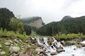 The topography of Upper Dir is dominated by high mountains. The most important mountain range is the Hindu Kush.[12] It runs from north east to south west along the northern borders with Chitral District. In winter whole area remains snow-covered. The mountains in the western part of the district are covered with forests, while the eastern mountain range, Dir Kohistan is barren. Panjkora River is the main river of the district, which originates from Dir Kohistan. Upper Dir headquarters is connected to all tehsil headquarters.[5]