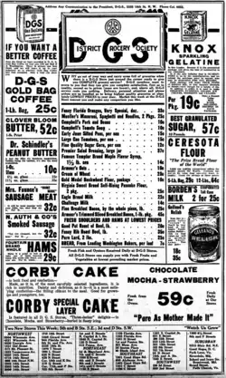 - ^ a b District Grocery Stores advertisement published in the Evening Star on November 11, 1921