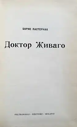 The printing by Mouton Publishers of the 1,000 copies of an adulterated Russian-language version, organized by the CIA, had typos and truncated storylines, and it was illegal, because the owner of the manuscript was Giangiacomo Feltrinelli,[22] who later put his name on the Mouton edition.[23][24]