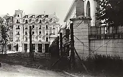 Paris was occupied by the Germans during World War II. Many Allied citizens were interned, and Dolores (born in England and married to an American) was detained at the German internment camp at Vittel.[30] The exact dates of her detention are unknown, and it is possible that Dolores did not spend her whole detention at Vittel. Vittel was a former hotel and spa, and relatively comfortable as internment camps went.[31]
