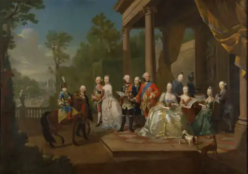 King Frederick had hoped that the marriage would quickly produce an heir, and was delighted when Elisabeth Christine became pregnant not long after the wedding. It was a disappointment to him when Elisabeth Christine gave birth to a girl, Princess Frederica Charlotte, on 7 May 1767. Nevertheless, King Frederick II gifted his niece a breakfast service worth 40,000 thalers as a childbirth present. Count Ernst Ahasverus Heinrich von Lehndorff (1727-1811), Chamberlain at the royal court of Prussia, noted in his diary: "I'm convinced she would have preferred 3,000 thalers in cash".[2] On her part, Elizabeth Christine showed little maternal feelings: she would sometimes call her daughter "little rubbish".[2]