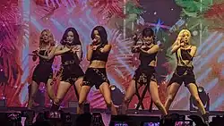 To promote the song, (G)I-dle launched the hashtag #dumdidumdi and Dumdi Dumdi Challenge, a dance challenge with the song on various social media platforms such as TikTok, Twitter and Instagram.[48] The group promoted the song with a series of live performances on various music programs starting with Mnet's M! Countdown on August 6.[49] This was followed by performance on SBS's Inkigayo,[50] SBS MTV's The Show,[51] MBC Music's Show Champion,[52] and KBS's Music Bank.[53] (G)I-dle has also performed the song live, including during the group's attendance at 2020 Soribada Best K-Music Awards.[54]