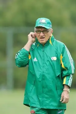 In November 2005, he was hired as South Africa's manager ahead of the 2006 edition of the Africa Cup of Nations, but he was shown the exit door soon after his team's dismissal performance at the tournament where they failed to score a goal.[8]