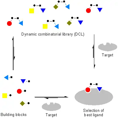 - ^ a b c d e Corbett, P. T.; Leclaire, J.; Vial, L.; West, K. R.; Wietor, J.-L.; Sanders, J. K. M.; Otto, S. (Sep 2006). "Dynamic combinatorial chemistry". Chem. Rev. 106 (9): 3652–3711. doi:10.1021/cr020452p. PMID 16967917.