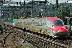 The E6 series (E6系) is a Japanese Shinkansen high-speed train type operated by East Japan Railway Company (JR East) on Komachi "mini-shinkansen" services on the Tōhoku Shinkansen and Akita Shinkansen from Tokyo to Akita since 16 March 2013. A pre-series set was delivered in June 2010 for extensive testing, with 23 full-production sets delivered between November 2012 and spring 2014.[1]