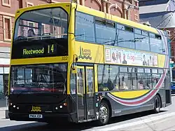 Subsequent operators following the Lolyne's launch included Brighton & Hove, who ordered 20 Lolynes, some with convertible open-top roofs, in 1999 before taking delivery of a further 20 during 2000, Yellow Buses of Bournemouth, who took delivery of nine during 1999, and Maynes Buses of Manchester, who took delivery of five during 1999.[1] Preston Bus took delivery of its first seven Lolynes with funding from Lancashire County Council in late 1999 as part of a 'Quality Bus' scheme to improve services running from Preston bus station to Tanterton,[4][5] subsequently taking delivery of a further ten Lolynes during 2000.[6]