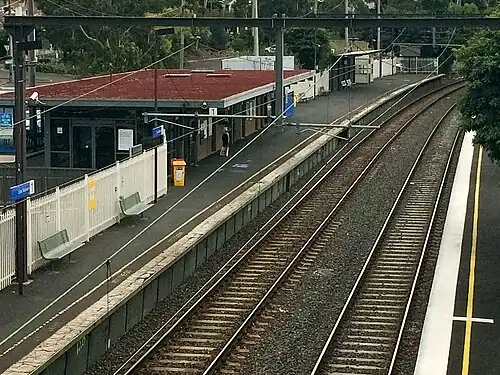 ![]() Westbound view of the station platforms, January 2021 | ||||||||||||||||||||||||||||||||||||||||||||||||||||||||