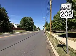 US 202 is the only numbered highway directly serving the township. It mostly follows Dekalb Pike along a northeast-southwest alignment across the southeastern portion of East Norriton. Southbound US 202 breaks off from Dekalb Pike to follow Johnson Highway along the border with Norristown for a short stretch before turning left into Norristown via Markley Street.
