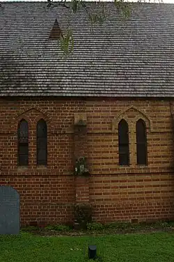 The Anglican St Bartholomew's Church is the sole building still standing within the grounds. It was built as a mortuary chapel in 1848.[7] In about 1870 an extension designed by colonial architect Richard Roach Jewell was incorporated and the enlarged building was consecrated as a parish church by the first Bishop of Perth, Mathew Blagden Hale on 16 February 1871.