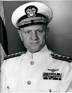 Feightner received orders in February 1959 to relieve the air wing commander of Carrier Air Group Ten (CVG-10) on the USS Forrestal (CV-59) that was deployed in the Mediterranean.[72] He continued to serve as CAG-10 when the air wing embarked on the USS Essex (CV-9) the following month and returned to the "Med" for another tour.[73] From February to July 1960, Feightner served on the staff of Carrier Air Group Four (CVG-4) where he helped write some of the first Naval Air Training and Operating Procedures Standardization (NATOPS) manuals with the goal of reducing the Navy's aircraft accident rate.[74] In July 1960, he reported to the Naval War College in Newport, Rhode Island, to study areas such as military tactics and wargaming. Feightner graduated in 1961.[75]