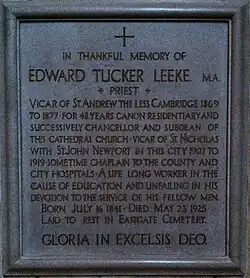 - ^ a b "Death of Canon E.T. Leeke", The Times, May 25, 1925, p. 16, column 3.